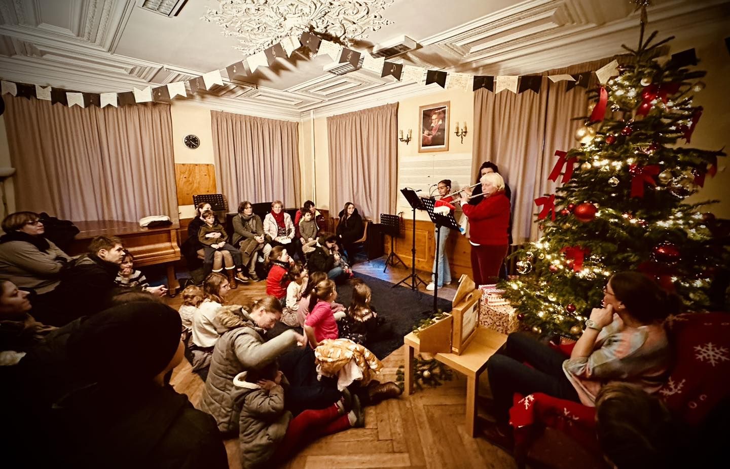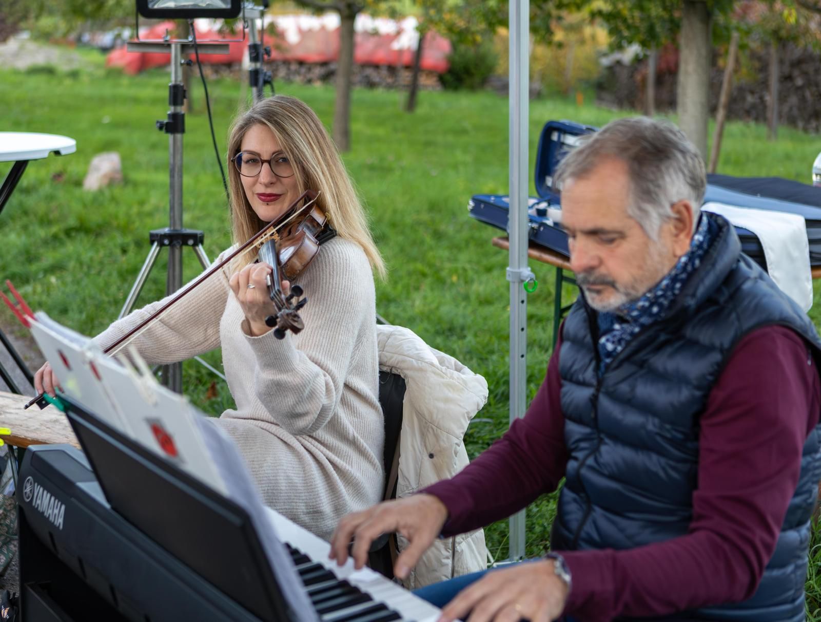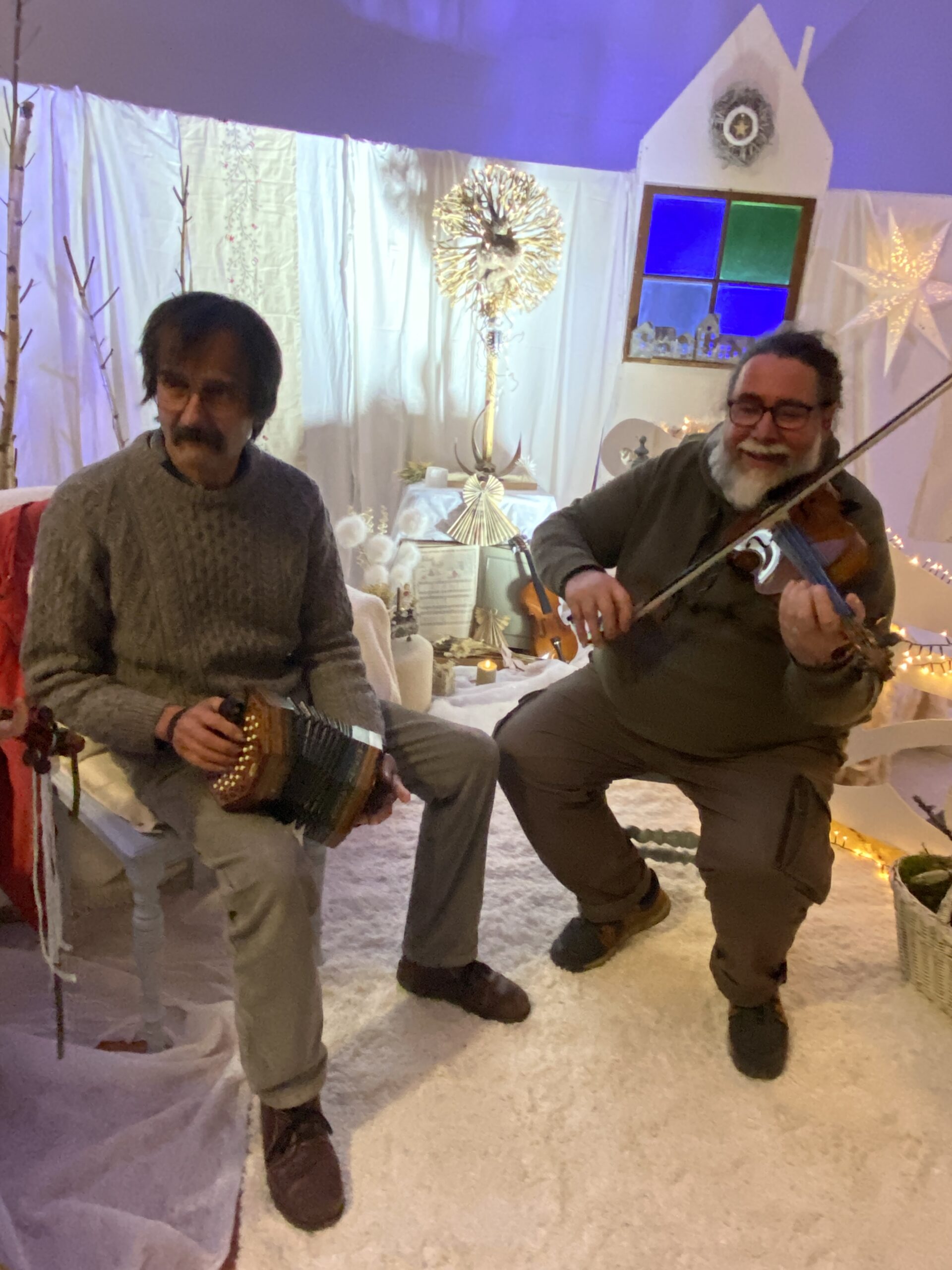 Inauguration du marché à Salle Arthus mise en beauté par Alexandra Klein, membre de notre conseil d’administration. Et mise en musique par notre professeur Sylvain Guehl, et quelques membres de son atelier de Musiques traditionnelles avec violon, harmonica et un instrument très étonnant : le concertina – danses scandinaves, irlandaises et alsaciennes.